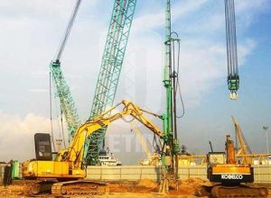打桩时的先导钻孔工作