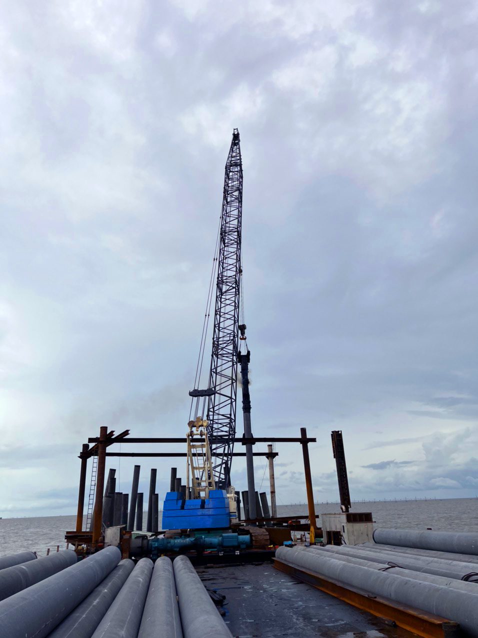 - Hạng mục: Thi công đóng cọc PHC D800 móng trụ turbine gió.
