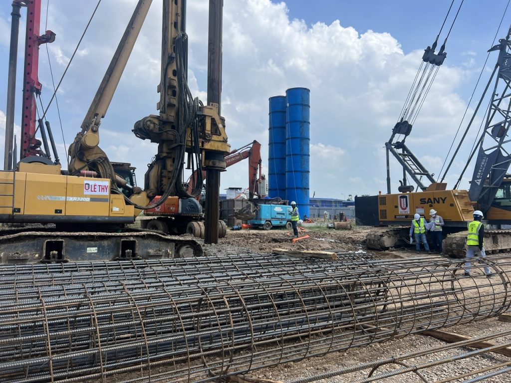 Early stage, Le Thy Construction Company Limited undertakes Test pile construction and Bored pile test to evaluate the bearing capacity of the ground, serving the accurate foundation design for the entire project.
